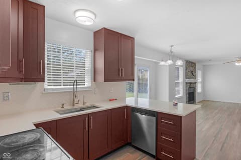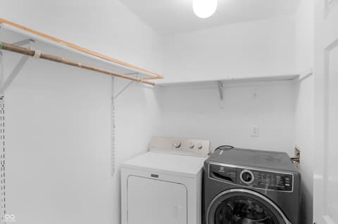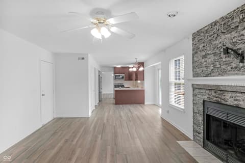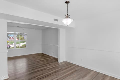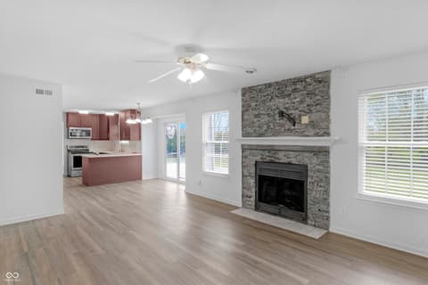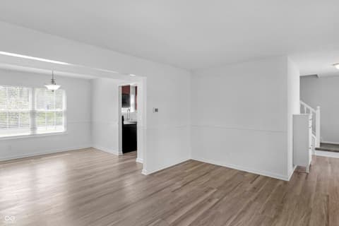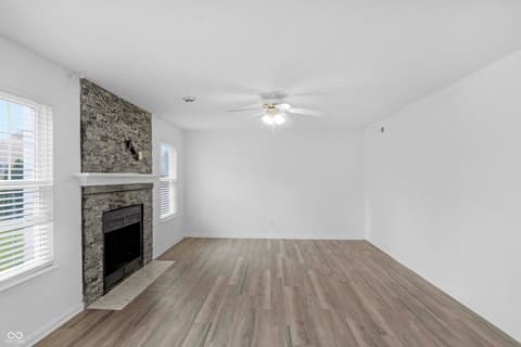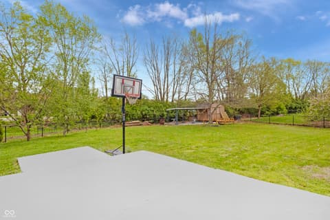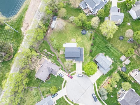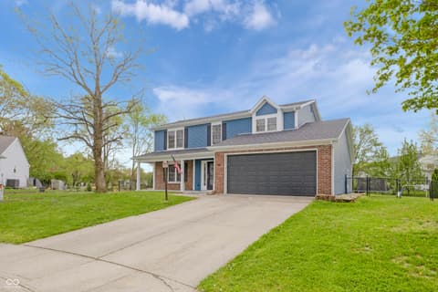Tucked on a quiet Fishers cul-de-sac, this beautifully renovated 4-bedroom, 2.5-bath two-story blends classic curb appeal with top-to-bottom modern upgrades. Fresh blue siding (2023), brick accents, and new double-hung windows (2020) welcome you into a light-filled open floor plan featuring new luxury flooring, designer wainscoting, and a stunning 2022 kitchen remodel with shaker cabinetry, quartz counters, stainless appliances, and pendant-lit peninsula that flows into a family room anchored by a stacked-stone fireplace. Upstairs, four spacious bedrooms boast brand-new luxury carpet (2023), while the primary suite offers a vaulted ceiling, walk-in closet, and updated dual-vanity bath. This year's upgrades take it over the top: a huge new concrete patio, custom pergola, all-new vanities, new lighting, garage improvements, and a brand-new gate opening directly to Nickel Plate Trail. A whole-home water softener, fully fenced yard, mature trees, and unbeatable location just minutes from shopping, dining, HSE schools, and a 5-minute walk to the Fishers YMCA make this one truly move-in ready - just unpack and enjoy.