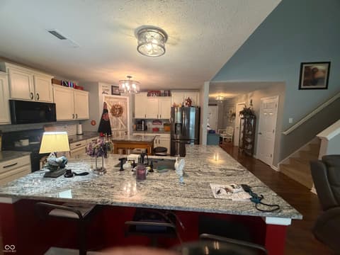 Experience refined living at 916 Beal WAY, Indpls. Built in 2017, this 2353 sq ft single-family residence is in great condition, offering an attractive property that seamlessly blends modern design with everyday comfort. The heart of this home is undoubtedly the kitchen, an open-plan space flowing into the living room. It features matching black appliances, elegant stone counters, and a large island with a sink, perfect for both culinary adventures and casual gatherings. Adjacent to this, the living room impresses with its high, vaulted ceiling, creating an expansive and airy atmosphere. The principal bathroom offers a double vanity and a walk-in shower, providing a serene and functional space for daily routines. Beyond the interior, the property includes a welcoming porch and a dedicated outdoor living space, ideal for relaxation or entertaining. An attached garage provides convenience and additional storage. Discover the effortless blend of style and functionality that awaits in this exceptional home.