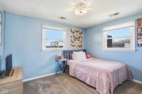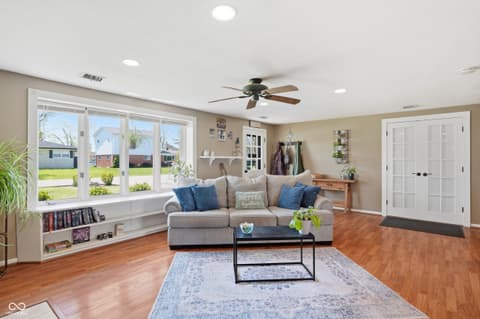 Skip the stress of "old house" problems and move right into this meticulously maintained 4-bedroom home. This property offers 2,014 sq ft of living space with all the major mechanicals already handled. You'll enjoy total peace of mind with a newer roof, HVAC, and water heater, all updated in 2020. Recent high-value improvements include new gutters (2025), new exterior doors (2023), and a brand-new garbage disposal installed just this year (2026). This home provides a solid foundation for its next owner, featuring jetted plumbing lines (2024) and a new chimney mortar cap (2024). Inside, the functional layout includes a 4th bedroom conversion in 2022, along with updated lighting (2025) and fresh carpet and padding (2023) throughout the house. The location is unbeatable! Spend your weekends enjoying the vibrant Fortville entertainment scene and local restaurants just blocks away. When at home, relax in your private, fully fenced backyard featuring professional landscaping (2024) that is currently in full spring bloom. For extra storage, the property includes an unfinished basement and storage shed out back. All kitchen appliances stay, along with the new washer and dryer set purchased in 2026! The seating area in the primary bedroom was intended to be a bathroom.