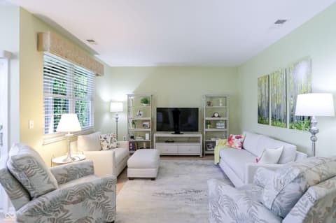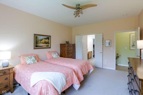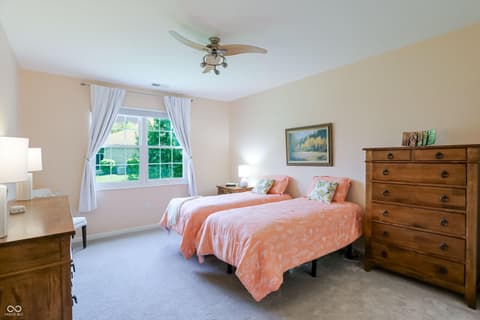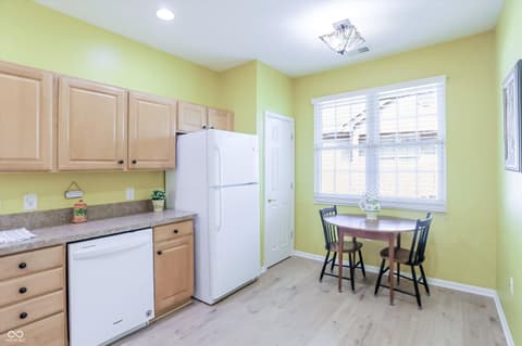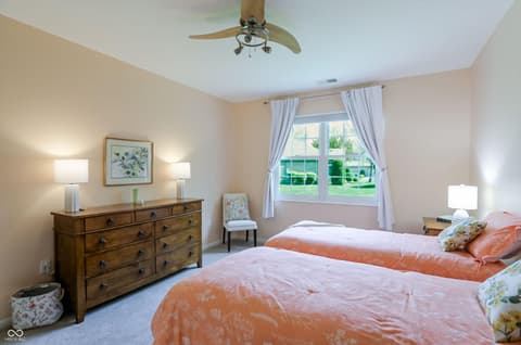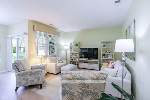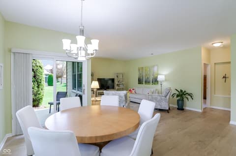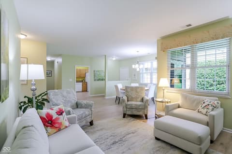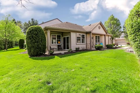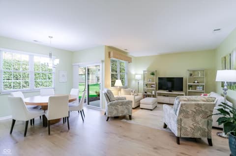 Welcome Home to this rare 1 level condo that seems to have the perfect combination of location, privacy, peace and quiet and a floor plan that lives bigger than you think. Located off 106th and 69 in a quiet part of Fishers on a dead end street in a very nice neighborhood sits this gem. Extremely well cared for, featuring new luxury vinyl plank throughout the home except the spacious primary suite, new high quality Anderson Windows, and neutral decor it is move in ready! A split bedroom plan is ideal for quests, a large dining area and living area with loads of natural light and 9' ceilings make for spacious feel throughout. With no one above this unit it truly feels like a private home when you walk up the walk to your front door, inviting covered patio and beautiful yard space. A finished 2 car garage w/ epoxy floor, a spotless kitchen w/ room for a small table and a very generous laundry / mudroom completes this very nice condo. All the exterior maintenance & landscaping is covered. Don't miss checking this one out!