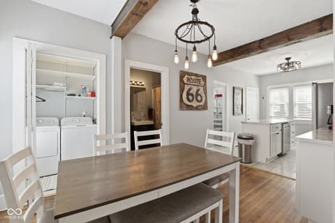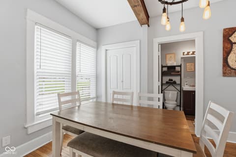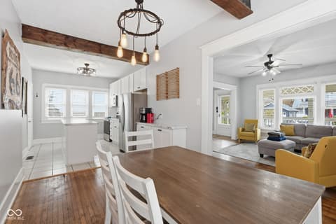 This classic Craftsman home, with three bedrooms and two full baths, blends timeless charm and modern updates. The welcoming entryway opens into a spacious living area with original hardwood floors. The updated kitchen offers modern convenience while retaining character. Situated on a beautiful, tree-lined street in a prime location, this home is within walking or biking distance to restaurants, coffee shops, theaters, the Monon Trail, library, and parks. Plus, it has proven to be a successful Airbnb, offering flexibility and income potential. Discover the potential and charm of this captivating Indianapolis home; schedule your private viewing today.
