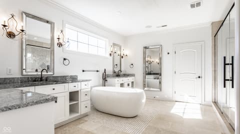Exquisite Updated Private Estate in Prestigious West Carmel. Experience the perfect harmony of luxury, privacy, and sophistication in this gated 2.7-acre estate, ideally located in the heart of West Carmel. Featuring two exceptional residences, this property offers endless possibilities for multi-generational living, entertaining, or creating your own private sanctuary. The 6,500+ sq. ft. main residence showcases a stunning blend of timeless elegance and modern updates. A grand foyer with a sweeping staircase welcomes you into an interior designed for both comfort and style, featuring a formal dining room, spacious home office, and a two-story great room with custom built-ins and a dramatic wall of windows. The gourmet kitchen is a showpiece-complete with dual islands, premium stainless-steel appliances, a butler's pantry, and luxury designer finishes throughout. Adding to the estate's appeal, the 3,000 sq. ft. carriage/guest house provides a fully equipped second home with 3 bedrooms, 2 baths, a finished bonus room, full kitchen, family room, and a private 1-car garage-perfect for guests, extended family, or a home-based business. This residence delivers exceptional seclusion and tranquility, while remaining just minutes from top-rated schools, fine dining, and boutique shopping. Whether envisioned as an elegant family estate, a luxurious retreat, or a rare investment opportunity, this property embodies the finest in Carmel living-exclusive, timeless, and truly one of a kind.