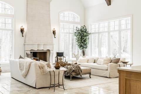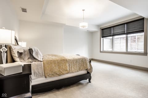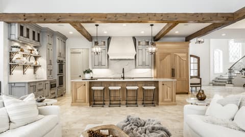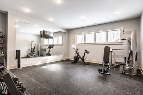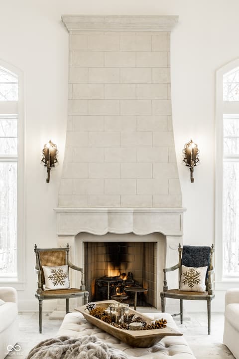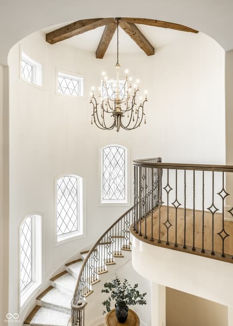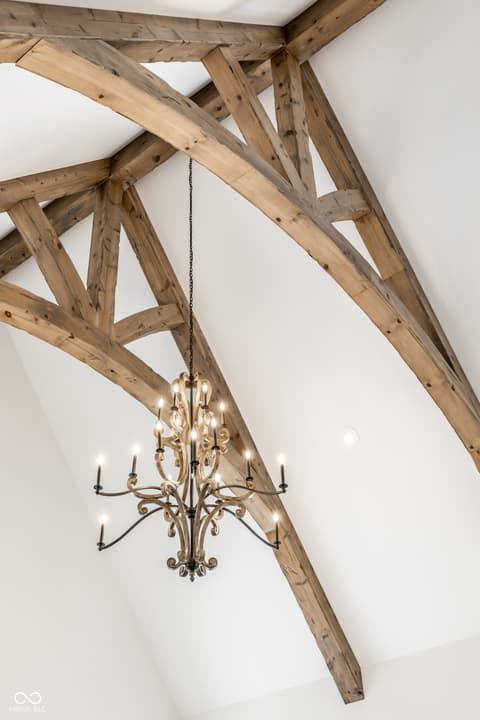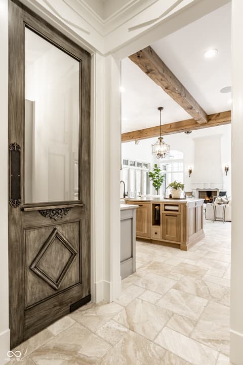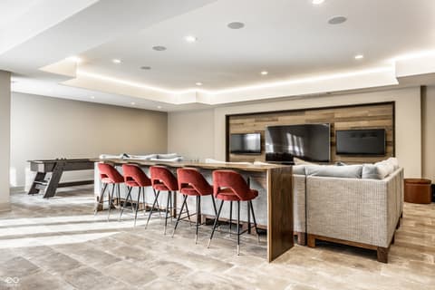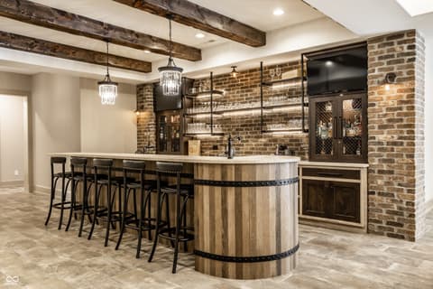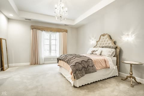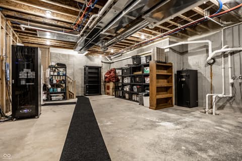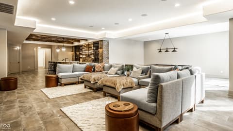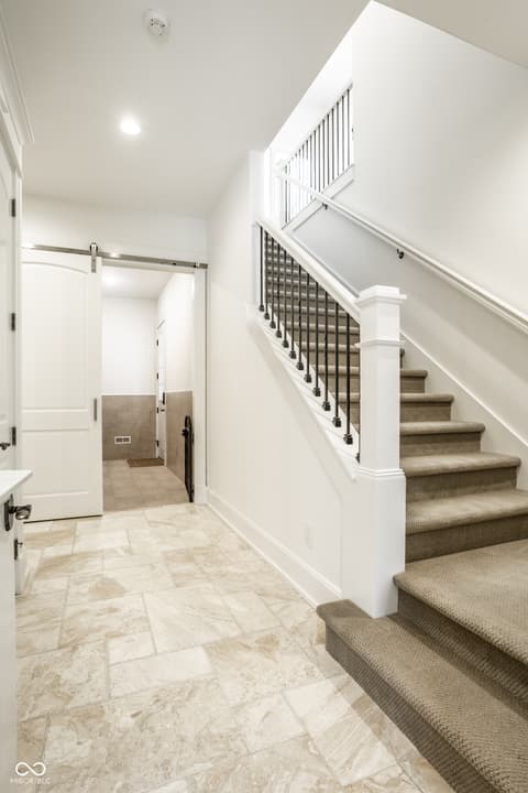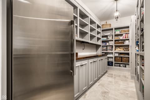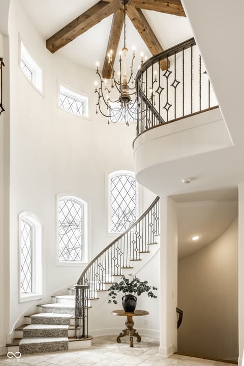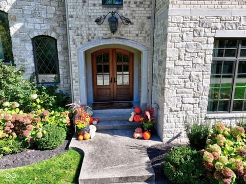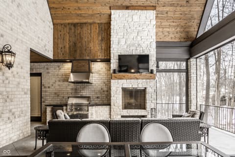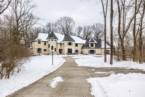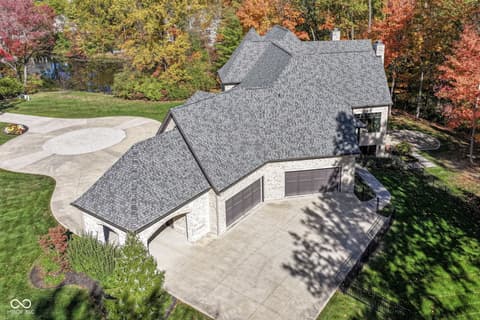 Exceptional custom home by Christopher Scott Homes on 4.15 wooded acres w shared pond in the heart of Zionsville. The wooded lot, set away from the road, offers privacy, but very convenient to Zionsville's charming village restaurants & shops, and top notch Zionsville schools. Spectacular French Country beauty built new in 2018, thoughtfully designed, well maintained, and one owner. 10,384sf, light & bright, travertine & white oak floors, vaulted ceilings w gorgeous beams, 5-6 Bedrooms, 5 Full & 3 Half Baths, 4 car garage. Enter the front double doors into the spacious Foyer w 20' ceiling & travertine floors. Follow the beautiful stone floors into the main entertaining area featuring the Great Room w lovely fireplace & vaulted ceilings w wood beams. Kitchen is perfect for entertaining w 12' island, Amish maple cabinets, Thermador appliances including Double Refrigerator, Double Ovens, 2 Dishwashers, Induction Cooktop w Limestone Hooded Vent. Spacious Dining Area & built-in banquette Breakfast seating offer many places to gather. Adjacent 625sf Porch w vaulted wooden ceiling, fireplace, grill, fan, heater & Phantom auto screens adds lovely outdoor space. Also on the main level is the Primary Suite and Office. Upstairs, 3-4 BR, 3 Full Baths & Bonus Room. Lower Level offers lots of room for entertaining w large Recreation space that includes pool table, shuffle board, 3 TV's plus Bar w 2 more TV's. Beautiful Bar has a limestone countertop with leather finish, refrigerator, 2 sinks, dishwasher & ice maker. Steps away is the temperature & humidity-controlled wine room w 500 bottle capacity. Plus Exercise Room, BR & Bath, large storage area, & walk-out to the backyard. 1,356sf 4-car garage features EV plug, 3 large storage closets, perfect for bicycles, strollers, golf clubs, gardening equipment & more. Backyard offers a fenced yard for pets and play, plus more yard, lovely woods, and shared pond to enjoy. Eagle Elementary, Zionsville MS, Zionsville High