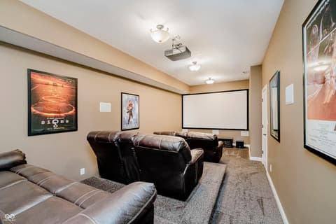 Welcome to your dream home in coveted Fox Hollow community! This beautiful 4-bedroom, 3 full bath, 2 half bath residence offers a perfect blend of elegance, comfort, and space for everyday living & entertaining. Be greeted by travertine and hardwood floors on the main level. The entry flows into a formal living room and dining rooms, perfect for gatherings. The heart of the home is the open-concept kitchen and family room-complete with granite countertops, stained cabinetry, counter space galore, pot filler at the gas range and stainless steel appliances. The main-level primary suite is a retreat, featuring a walk-in closet and a spa-inspired bath with double sinks, a jetted soaking tub, and a separate shower. Upstairs, a versatile loft area provides extra room for hobbies or play. Also upstairs are 3 more large bedrooms & 2 full baths, attic storage. The finished basement is designed for fun and entertainment. Host unforgettable movie nights in the theater room with included 3-tier seating, a 135" screen & surround sound. Serve up drinks at the custom wet bar with sink & beverage cooler, or get some work done in the dedicated office space or host game night in the bonus area by the bar. Outside, the backyard and patio offer the ideal setting for summer barbecues with space to play. Finished sideload 3-car garage fits all the toys & more. New: roof 7/2025, water heaters 2026, carpet 2022, Culligan water softener.