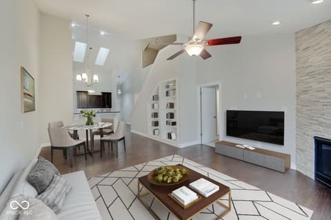 Move-In Ready & Minutes to Fishers District-This One Checks Every Box! Welcome to this beautifully maintained, one-owner condo in the highly desirable gated community of Highpoint Ridge, located within the top-rated Hamilton Southeastern School District. Perfectly positioned in a quiet area of the neighborhood, this home offers the ideal blend of comfort, style, and convenience-just minutes from Fishers District, I-69, and endless shopping and dining, with walkable access to local favorites. The thoughtfully designed kitchen is sure to impress with 42-inch cabinetry, a spacious center island, stainless steel appliances, reverse osmosis water system, custom glass subway tile backsplash, and adjustable under-cabinet lighting,-perfect for both everyday living and entertaining. The inviting living room features a stunning corner gas fireplace, built-in shelving, and abundant natural light streaming through the glass door leading to your private patio, creating a warm and welcoming space to relax or host guests. The primary suite offers a true retreat with a large walk-in closet and a beautifully appointed en suite bath complete with dual vanities, granite countertops, a walk-in shower with dual shower heads, and a heated bidet seat for added comfort. Upstairs, a spacious loft with its own walk-in closet provides flexible living space-ideal for a home office, media room, workout area, guest retreat or whatever inspires you! Additional highlights include a finished, extended two-car garage with extra storage, a brand-new gas water heater, and front-load washer and dryer atop large storage drawers. Freshly painted with brand-new carpet and rich hardwood flooring throughout, this home is truly move-in ready. Enjoy a low-maintenance lifestyle in a prime location-this one is not to be missed!