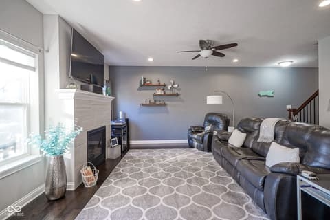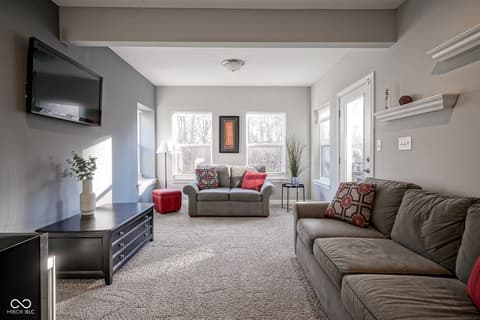Looking for low-maintenance living in the heart of Fishers? This stunning three-story condo offers the perfect blend of style, comfort, and convenience. Meticulously maintained and move-in ready, the main level welcomes you with beautiful hardwood floors and a chic powder room ideal for guests. The bright and inviting living room is perfect for entertaining, featuring a cozy gas fireplace and expansive windows overlooking a serene tree-lined view. The open floor plan continues into a gourmet kitchen equipped with a large center island, quartz countertops, and stainless steel appliances. The adjacent dining area and sunroom is filled with natural light, offers backyard views, and opens directly to a private Trek deck-perfect for relaxing or hosting friends. Upstairs, two spacious secondary bedrooms with generous closet space share a large, full hall bathroom with tub. The impressive primary suite serves as a private retreat, showcasing a tray ceiling, an expansive walk-in closet, and a spa-like ensuite with barn door entry, a glass-enclosed, fully tiled shower, tiled floors, and a dual-sink quartz vanity. The walkout lower level provides a flex space ideal for a home office, fitness room, or additional living area, along with a 4th bedroom. Step outside the walk-out basement with a shaded patio and peaceful backyard setting. A two-car attached garage offers ample storage, parking, and overhead storage. Situated in a beautifully maintained community within walking distance to the vibrant Fishers District-featuring popular spots like 1933 Lounge and Sun King Brewery-and just minutes from the Fishers Event Center, home to the Indy Fuel and year-round entertainment. The HOA covers exterior maintenance, landscaping, and snow removal making for truly effortless living. Don't miss this exceptional opportunity-schedule your showing today!