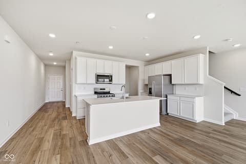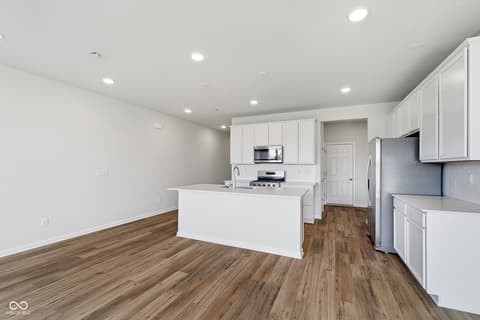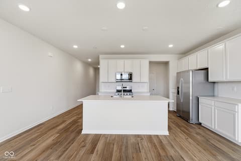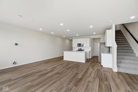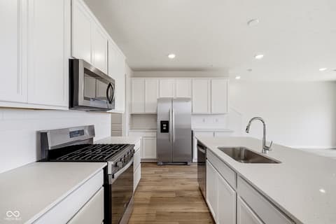 Presenting the Hadley model, a brand-new Pulte townhome in the vibrant Towns at River Place community, where residents enjoy exceptional amenities including a resort-style pool, state-of-the-art fitness center, and pickleball courts. This beautifully designed FOUR bedroom townhome features a spacious open-concept layout, ideal for modern living and effortless entertaining. The stylish kitchen showcases crisp white cabinetry, Aruca White quartz countertops, a large center island, and stainless steel gas appliances, seamlessly connecting to the dining and living areas for easy gatherings. The main level is enhanced with luxury vinyl plank flooring, offering both durability and a contemporary aesthetic. Upstairs, the home offers four generously sized bedrooms plus a versatile loft, perfect for a secondary living space, home office, or play area. The tranquil owner's suite is a true retreat, complete with a private sitting area, en-suite bathroom with a shower, and a spacious walk-in closet. Additional bedrooms provide flexibility for guests or personalized spaces. Step outside to enjoy a private deck, ideal for relaxing or entertaining .This vibrant community located in the Hamilton Southeastern school district offers an array of exceptional amenities. Located just five minutes from dining, retail, entertainment, and more, it provides unparalleled convenience. Directly across from Town Run Park, residents can enjoy over seven miles of mountain biking and walking trails. The community is also within walking distance of the upcoming White River Park, which will feature trails, a kayak launch, a recreation lawn, a stomping creek, fishing opportunities, and a pedestrian boardwalk. Residents have access to shared amenities, including a pool, fitness center, and pickleball courts. Additionally, the community is in close proximity to Keystone at The Crossing and 96th Street retail, making it an ideal location for both leisure and convenience. Photos of similar home.