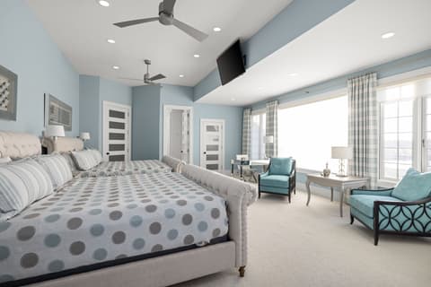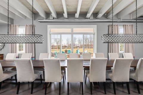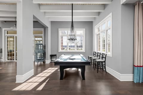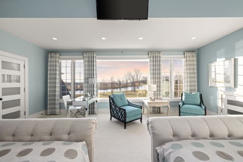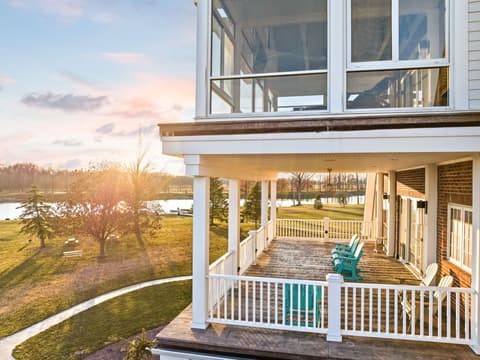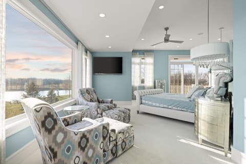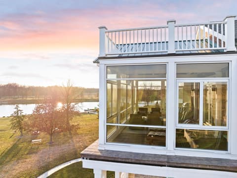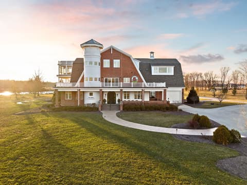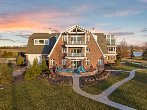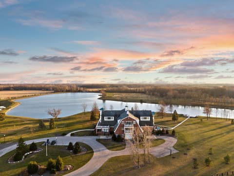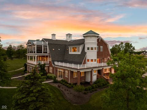 A rarefied lakefront retreat, 9825 Windy Hills Drive invites families of all sizes to enjoy the best of waterfront living. Set atop the highest point in Boone County within Promontory, Zionsville's premier private community, this 3-level, home on almost 5 acres overlooks a 35-acre lake and features more than 25,000 SF of living space. Intentionally crafted by the renowned Gary Nance to be an entertainer's dream come true, interiors encompass 3 kitchens, 2 theaters, a commercial-grade wet bar, generous ensuite bedrooms, a billiard/gaming area and a bowling alley. With 6 beds, 10 full plus 5 half-baths, this home is perfect for multi-generational families as well as gatherings small and large. Outside is a deck with docking capabilities and a 5-car garage. Buyers can expand the property to include the 2.5-acre sites on either side. At once magical and modern, this epic retreat invites residents to gather, connect and enjoy the area's enchanting natural surroundings while partaking in an abundance of activities on land and water. Revel in pristine rural beauty and quintessential lakefront living at 9825 Windy Hills Drive. The estate is a short drive to downtown Zionsville as well as top-rated schools. Buyers may choose a membership to either Holliday Farms or Chatham Hills.