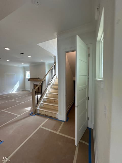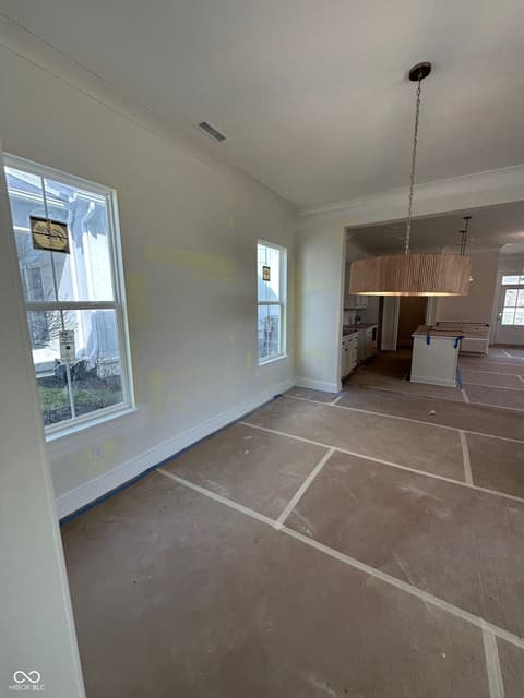 Discover an incredible opportunity in one of the nation's best places to live-Carmel. The Sunrise on the Monon community offers a welcoming atmosphere with convenient access to downtown Carmel, Keystone at the Crossing, I-465, and the Monon Trail. Carmel living at its best - Direct access to the Monon Trail. This brand-new, 3-bedroom haven by Old Town Design Group offers rare direct access to the Monon Trail, perfect for walking, biking, and maintaining an active lifestyle. From the moment you arrive, the cozy front porch welcomes you in. Step inside to discover a spacious living and dining area bathed in natural light and accented by a warm gas fireplace. The convenient upper-level laundry room saves you time, while the oversized pocket office off the entryway provides a dedicated workspace. The gourmet kitchen features stainless steel appliances, quartz countertops, and cabinetry with soft close doors and drawers. The loft area offers a versatile second living space, ideal for a family room, game room, or flex space. Unwind on the large front porch, or enjoy al fresco dining under the covered outdoor living space. Additional features include: open-concept first floor with dedicated dining area with ceiling feature, quartz countertops throughout the home, pre-wiring for security system, video doorbell, raised ceilings, and so much more. Enjoy a complimentary one-year household membership to the Monon Community Center with the purchase of this home.