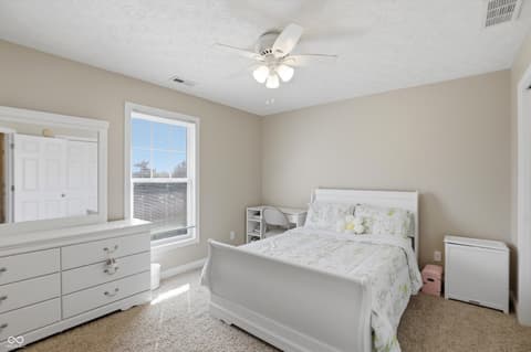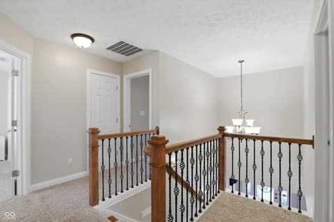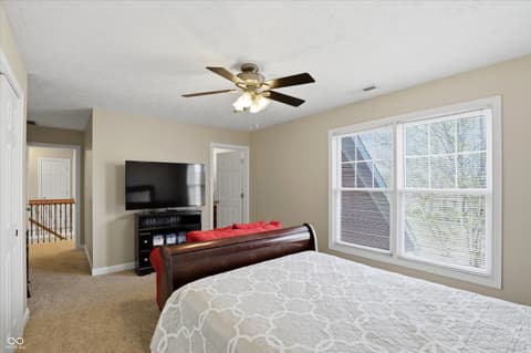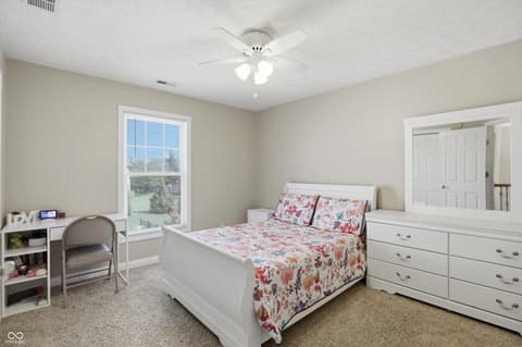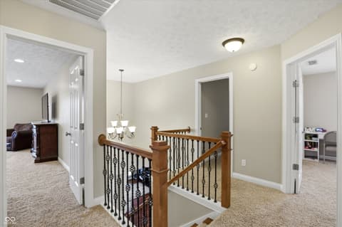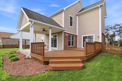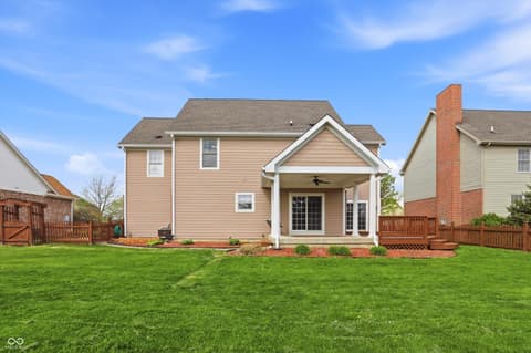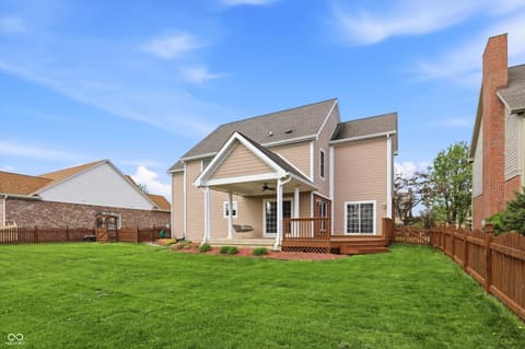 Rare opportunity to live in a custom neighborhood at this price point! Home designed with no wasted space or rooms. Large eat-in kitchen with dining space overlooking the back covered porch and deck plus a fully fenced back yard! Big pantry and also a huge laundry room which doubles as the mud room with utility sink. Office on main floor with french doors. The upstairs is roomy with a private bedroom ensuite with full bathroom- ideal for guests or a teenager. Bedrooms 2&3 share a jack-n-jill bathroom. Primary suite is oversized with two closets. Nicely done primary bathroom with extensive tile work. Oversized 2 car garage with high ceilings and extra deep. Fox Hollow is conveniently located close to Geist Lake, 96th st./Fall Creek Trail, all the schools, local favorite eateries, work-out facilities, and many of Fishers's finest parks. Also, easy access to I-70 and 69.