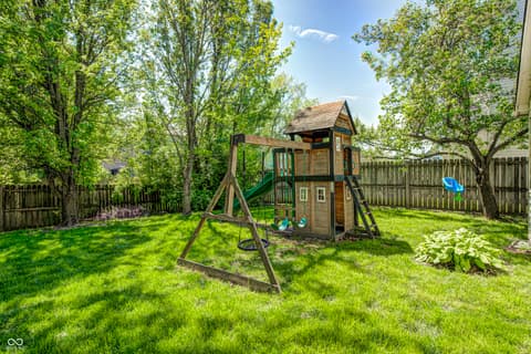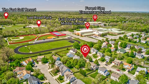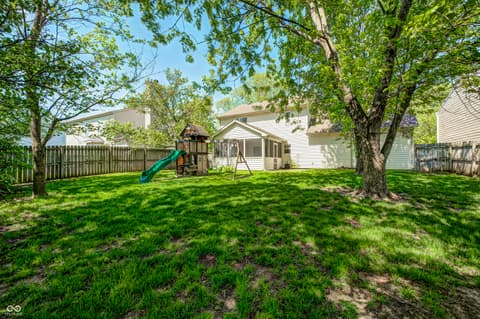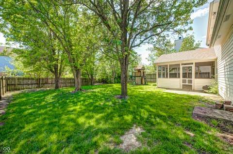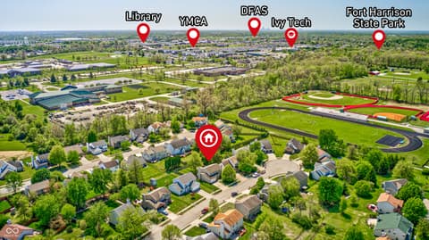 Fall in love with this spacious 4 bed, 2.5 bath house on a cul-de-sac with oversized 2 car garage! The generous living room has an inviting fireplace for those cold winter days and plenty of space for entertaining. The kitchen with large island and included appliances provides ample storage space for all your cooking needs. Whether you prefer an eat-in kitchen or formal dining room, this house has it! Upstairs you'll find a large primary suite and 3 other sizeable bedrooms. The primary bath includes double sinks and a walk in closet while the 4th bedroom is substantial and could be used for a rec room, office, craft room, or more! When the weather warms up, head out to your large fenced backyard with screened patio and negotiable playset to enjoy the sun or take a short stroll to cool off in the neighborhood pool. Conveniently located within minutes of Fort Harrison State Park, the YMCA, the library, DFAS, golfing, shopping, restaurants, and so much more! New updates include carpet, garage door openers, upstairs toilets, smart light switches, water heater, water softener, stove, and fridge! HVAC only 7 years old and Washer/dryer are included.