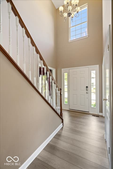 Welcome home to Auburn Springs! This beautifully maintained 4-bedroom, 2.5 bath home offers the perfect blend of space, comfort, and potential. From the moment you walk in, you're greeted by a grand staircase and soaring 9-foot ceilings that set the tone for the rest of the home. The main level features multiple living spaces, including a formal dining room, family room, and a spacious, open-concept kitchen and living area, perfect for entertaining. Cozy up by the fireplace or host gatherings with ease thanks to the thoughtful layout. Upstairs, you'll find generously sized bedrooms, including a large primary suite with a vaulted ceiling, walk-in closet, and convenient access to the laundry room. The unfinished basement is already drywalled and ready for your finishing touches! An incredible opportunity to create the space you've been dreaming of. Step outside to a fully fenced backyard, ideal for entertaining, pets, or simply relaxing at home. With its charming brick exterior and versatile layout, this home is full of possibilities and ready for its next owner to make it their own!